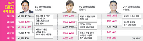 JYP, YG는 'K팝스타' 영입 발표 후 정도 차이는 있지만 주가 급등을 경험했다. 22일 당시 YG는 8.2% 오른 4만900원을 기록했다.