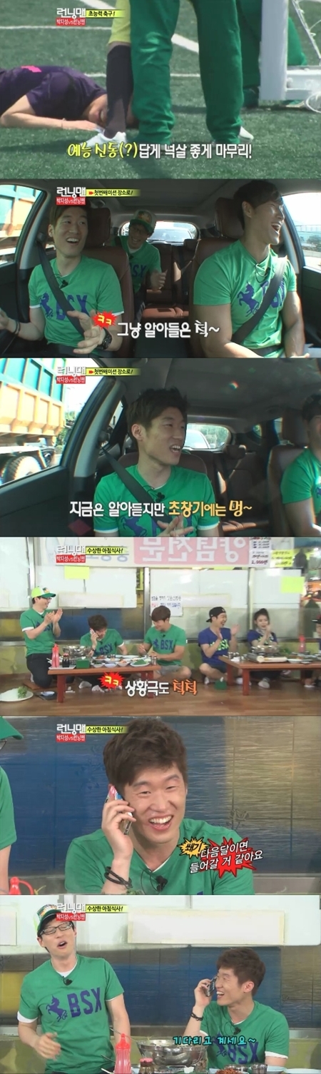 박지성은 5월27일 방송된 SBS '일요일이 좋다-런닝맨'에서 멤버들과 함께 초능력축구 대결을 비롯해 생선가게 아르바이트 미션까지 적극적으로 참여했다.