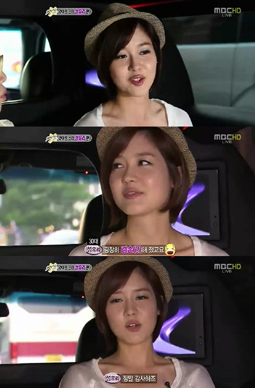 이날 성유리는 이상형에 변화가 있냐는 질문에 "예전에 비해 굉장히 겸손해졌다"며 웃었다.
