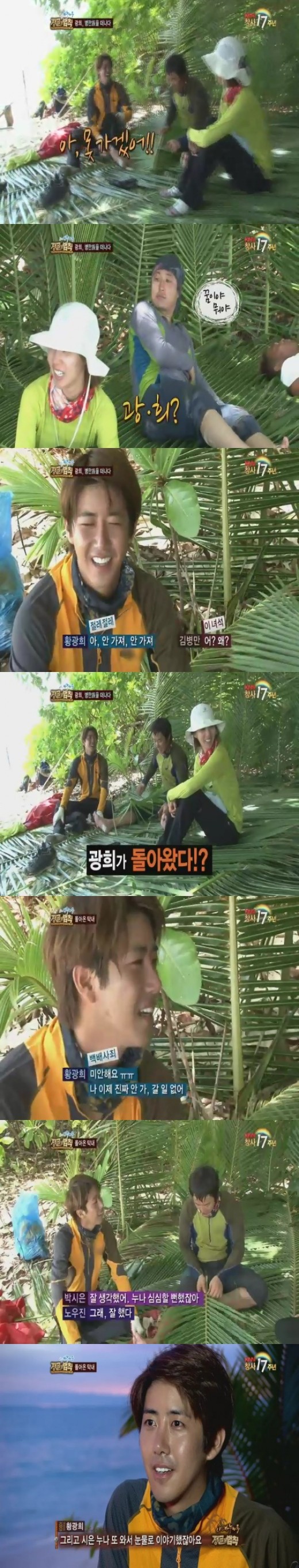 이에 김병만족은 언제 그랬냐는 듯 환한 얼굴로 황광희를 반겨줘 보는 이들을 훈훈하게 만들었다.