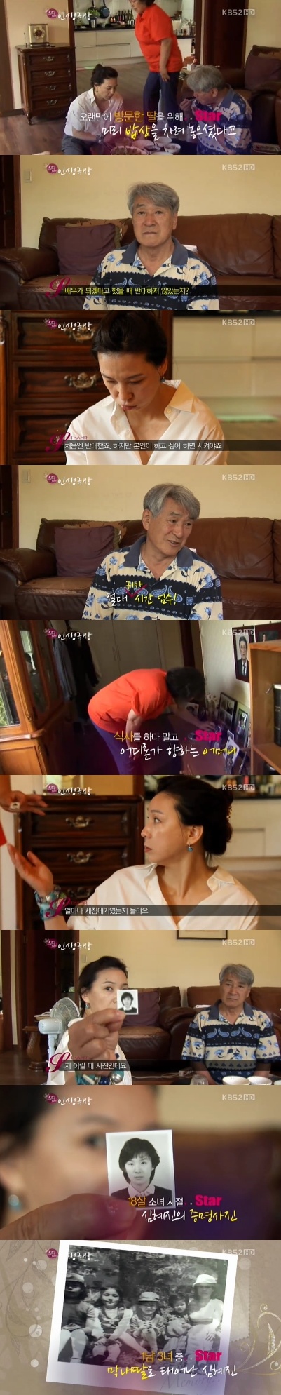 배우 심혜진이 6월 26일 방송된 KBS 2TV '스타 인생극장'에 출연해 속이야기와 일상생활을 공개했다.
