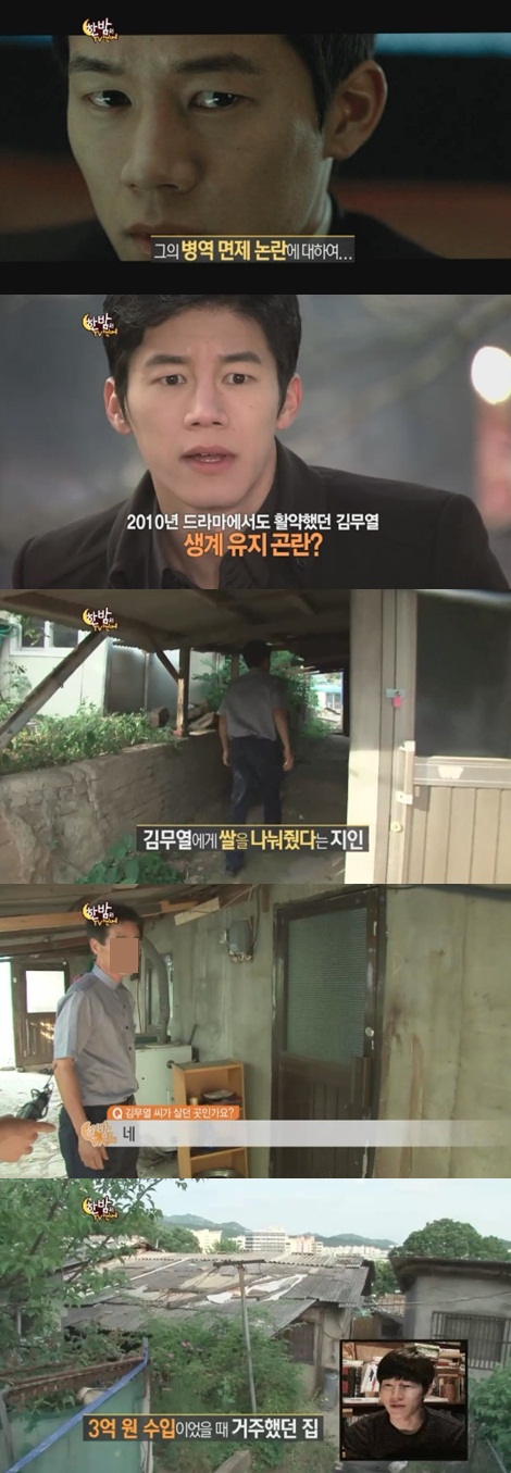 6월 27일 방송된 SBS '한밤의 TV연예'에서는 생계곤란으로 군면제 판정을 받아 병역기피 논란에 휩싸인 김무열 소식을 전했다.