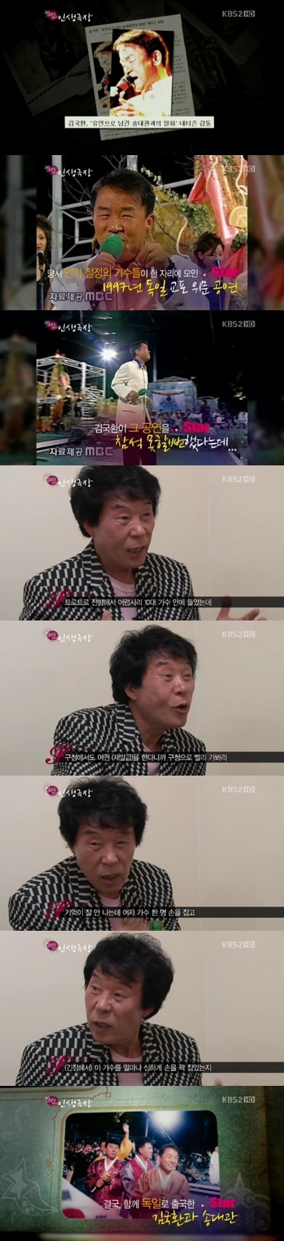 과거 김국환은 송대관과 함께 10대 가수로 꼽혀 독일 공연을 하게 됐다. 하지만 기일이 만료된 여권을 가져온 김국환은 출국장에서 집으로 돌아가야만 했다. 독일행 비행기는 곧 떠날 태세였다.