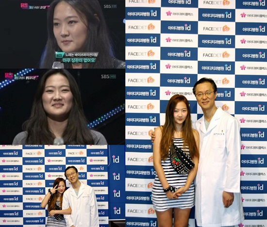 공개된 사진 속 성수진은 'K팝스타' 출연 당시와는 180도 다른 외모를 뽐냈다. 한층 갸름해진 얼굴로 강하고 중성적이던 이미지에서 여성스럽고 귀여운 이미지로 변신했다. (사진=SBS '일요일이 좋다-K팝스타' 캡처, 아이디병원)