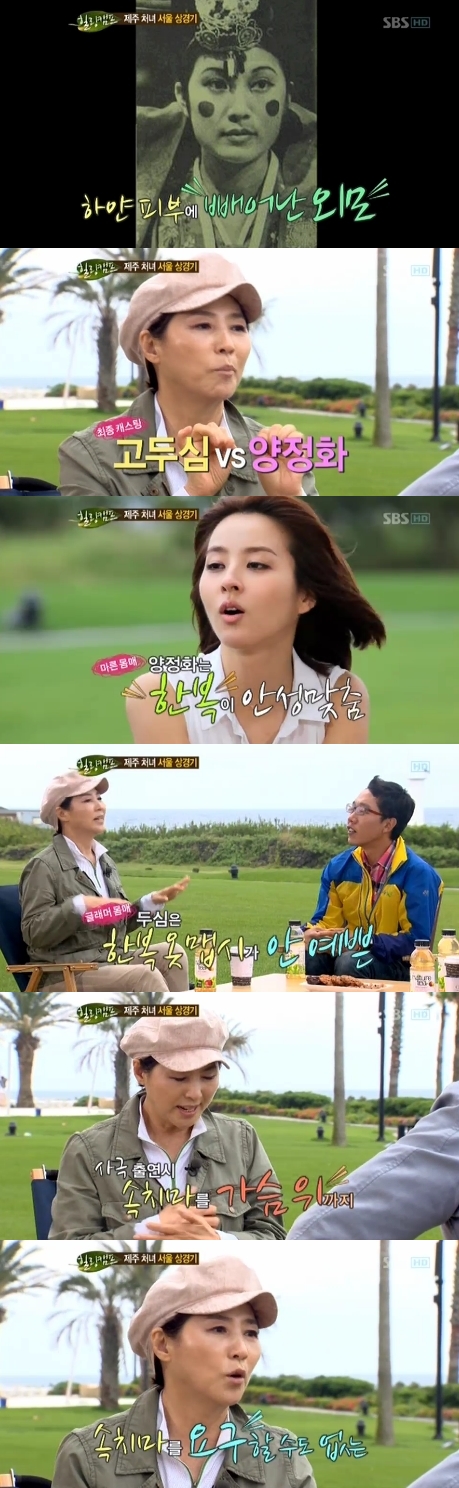 고두심은 "당시 양정화라는 배우가 있었는데 정말 예뻤고 하얀 피부에 서구적인 미인이었다. 양정화와 내가 최종 후보에 올랐는데 양정화는 가슴이 말라서 한복을 입으면 안성맞춤이었다"고 말했다.