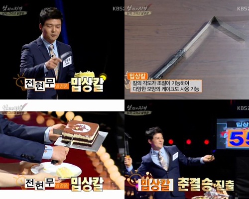 이날 전현무는 'ㄱ'자 모양으로 특별하게 제작된 케이크 자르는 칼을 '밉상칼'이라는 이름으로 제작, 출품했다.