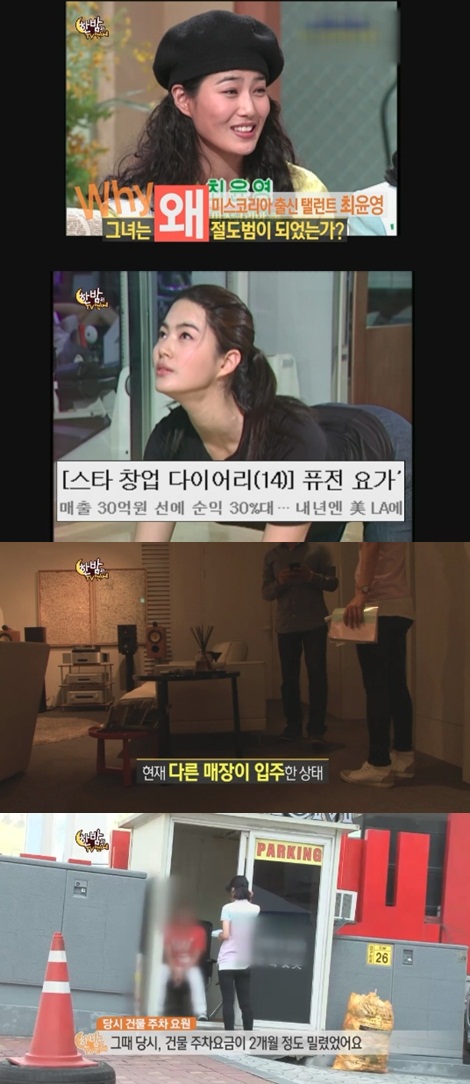 최윤영이 운영했던 요가학원 건물 주차관리인은 6월 27일 방송된 SBS '한밤의 TV연예'에 "재정상황이 안 좋았다"고 밝혔다.