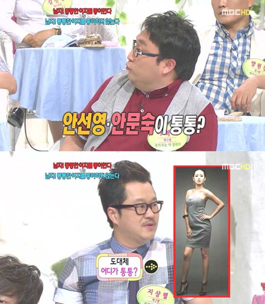 대상을 바라보는 방식은 우리가 알고 있는 그리고 우리가 인식하고 있는 것과 깊은 관련이 있습니다. 여성의 몸매에 대한 것도 마찬가지입니다. 안선영 안문숙 손예진 조여정 송혜교등이 통통하다고 바라보는 이혁재 지상렬 그리고 숀리의 언급은 상당수 남성들의 여성의 몸에 대해 바라보는 방식을 드러냈다고 봅니다. 이상적인 여성의 몸매마저 통통하다고 인식하는 이러한 남성들의 여성의 몸에 대한 문제 있는 시선은 방송, 신문, 인터넷 등 매스미디어를 통해 확대재생산되고 수많은 사람들에게 여성의 몸매를 바라보는 인식의 토대를 마련해줍니다.