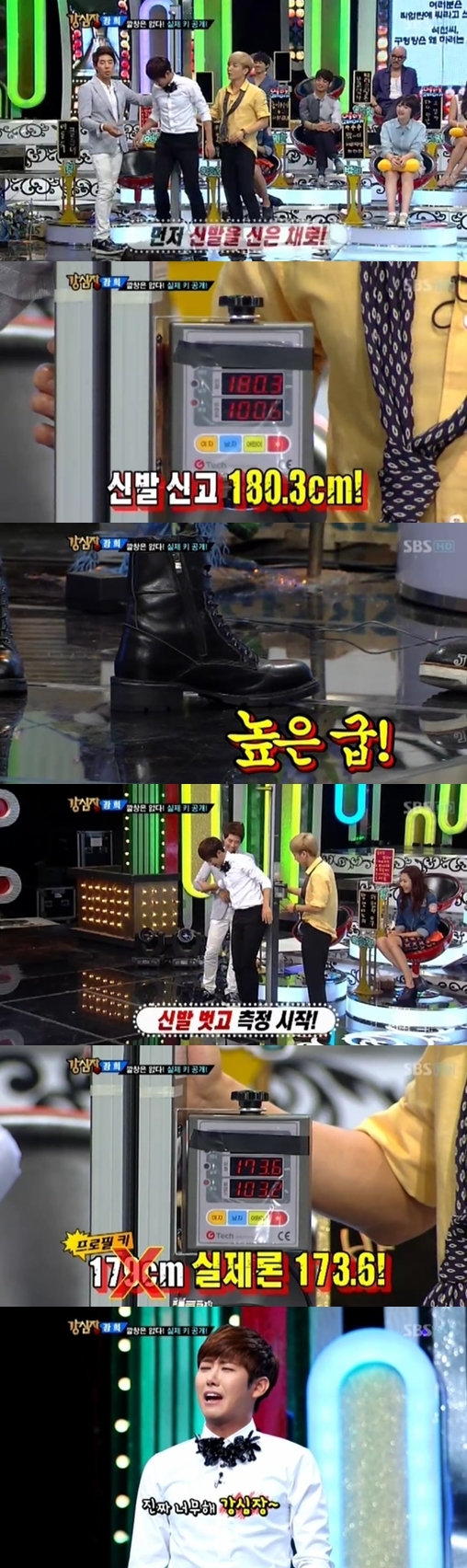 광희가 신발을 벗고 다시 실제 키를 잰 결과는 173.6cm였다. 본의 아니게 키가 들통나자 광희는 "강심장 정말 밉다"며 울상을 지었다.