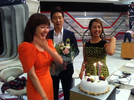 이정민 아나운서가 공개한 사진엔 KBS 2TV '생생정보통' 진행자인 김경란 도경완 이지애 아나운서 모습이 담겼다. 김경란은 이날 '생생정보통'에서 하차했다. 김경란은 후배들이 준비한 조촐한 송별회에 감격한 듯 자신 앞에 놓인 케이크를 바라보며 눈시울을 붉히고 있다. 이정민은 9월 3일부터 김경란 뒤를 이어 '생생정보통' 진행을 맡는다.