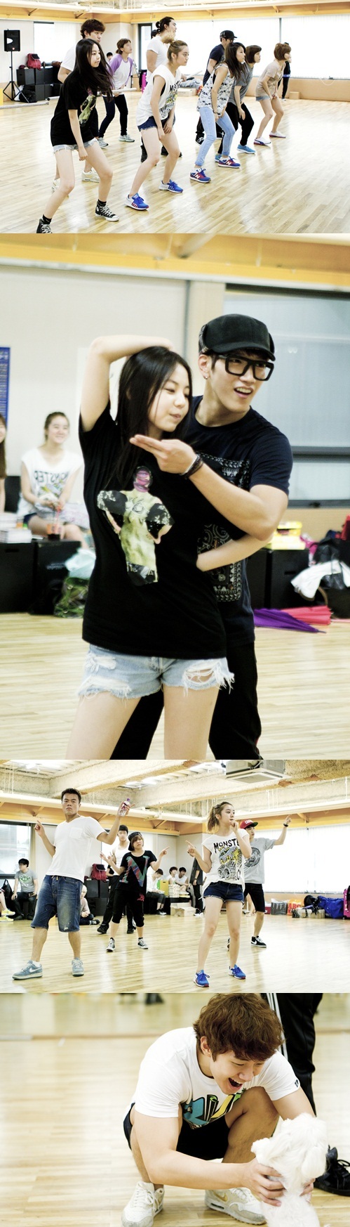 특히 공연 연습 중 소희와의 듀엣에서 장난기가 발동한 준수와 웃음을 참고 있는 소희의 모습은 보는 이들까지 웃게 만들며, 연습실 구석에서 휴식을 취하고 있는 슬옹과 준호의 다정한 모습도 눈에 띈다.