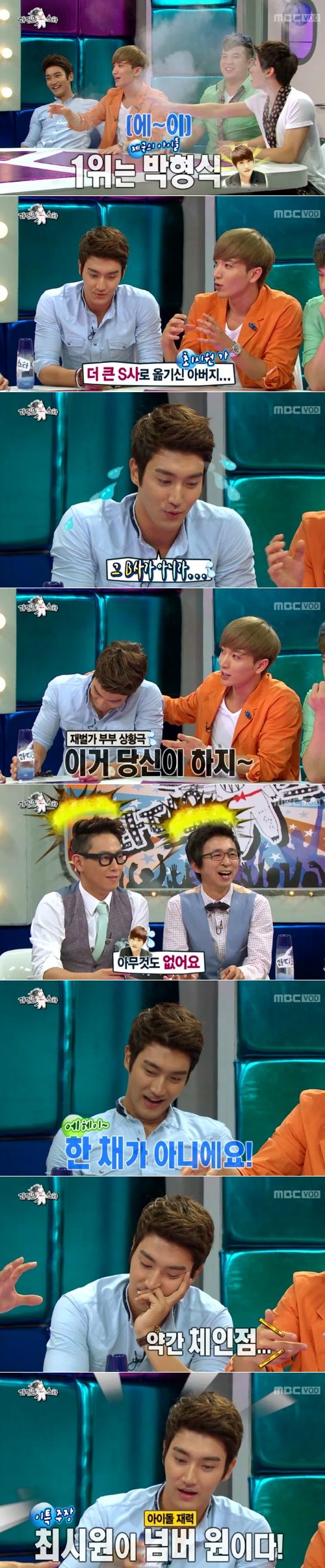 5일 방송된 MBC '라디오스타'에서 슈퍼주니어 멤버들은 최시원이 아이돌 재력 랭킹 1위에 해당한다고 주장했다.