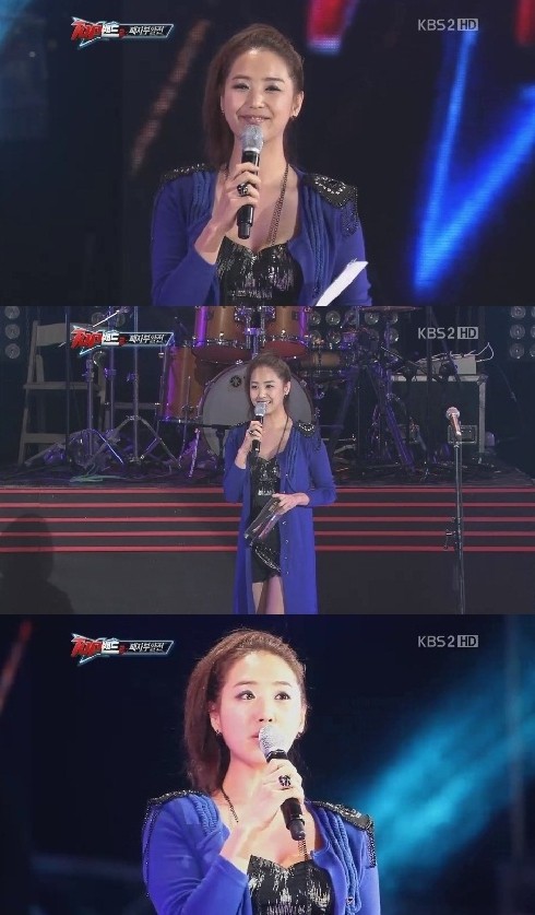 | KBS 이지애 아나운서가 파격적인 의상으로 눈길을 끌었다./KBS 방송 캡처 |